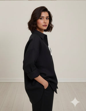 PREMIMUM BLACK CRUSED FABRIC CO RD SET